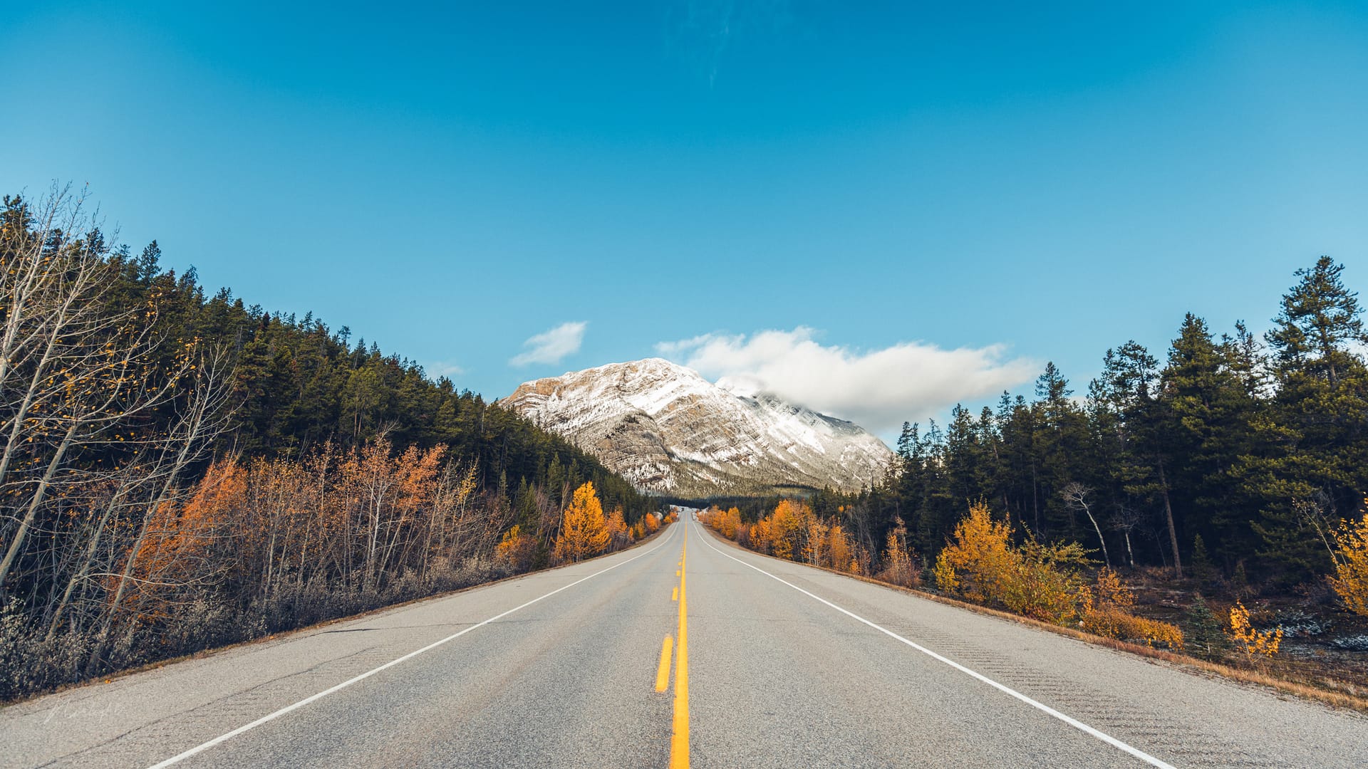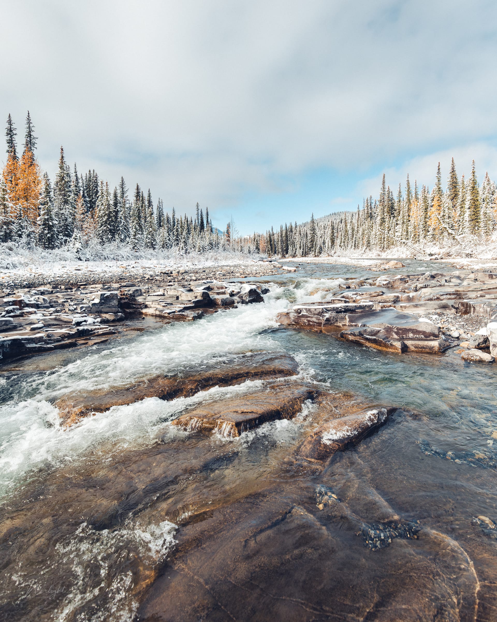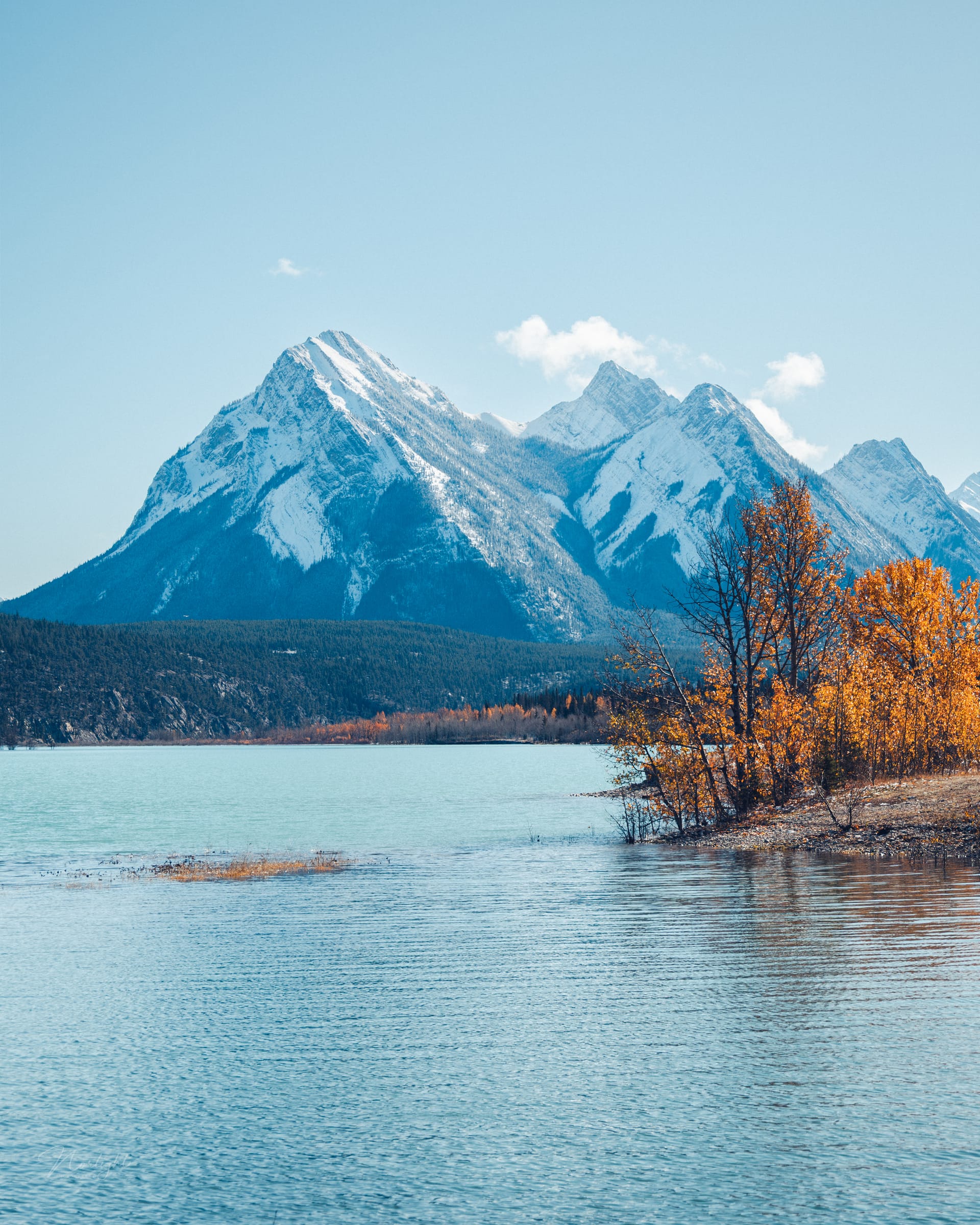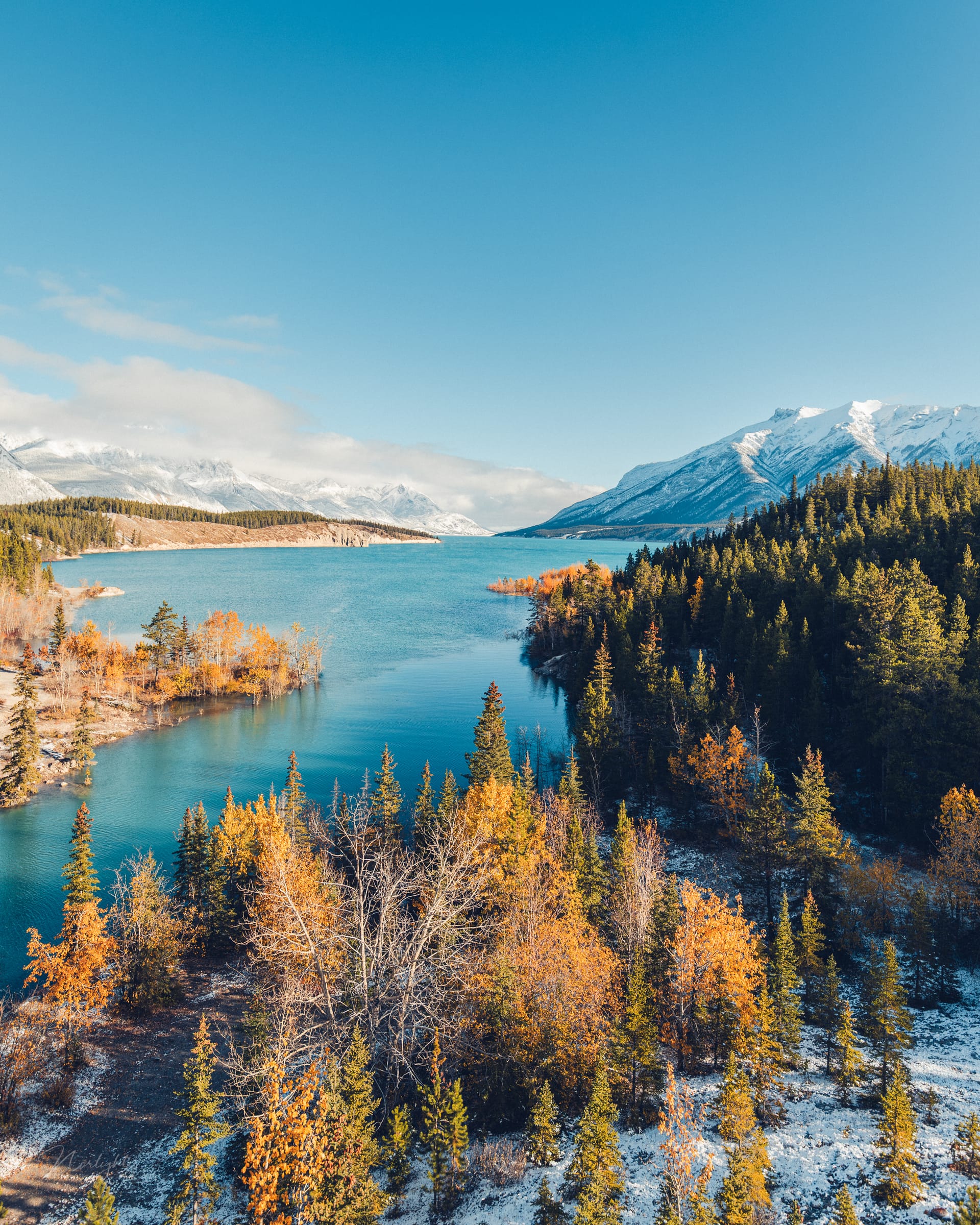 I was driving past this lake when I looked out and saw that some of the autumn forest was under the water. I guess there has been a lot of water flowing into this lake because at certain points the trees were rooted in two feet of water. It made for an interesting perspective where the orange of the leaves just melded into the beautiful blues of the water and sky, creating a lot of stark contrast!